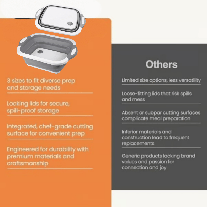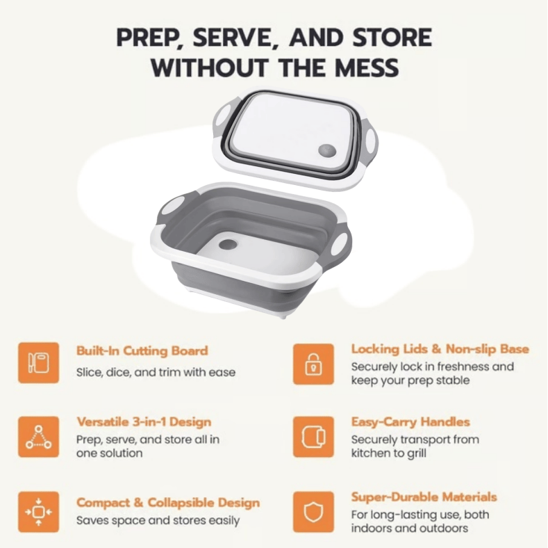 Prep, Serve & Store Without the Mess – Built-in cutting board and tight-seal lids keep your ingredients fresh and your counters clean.