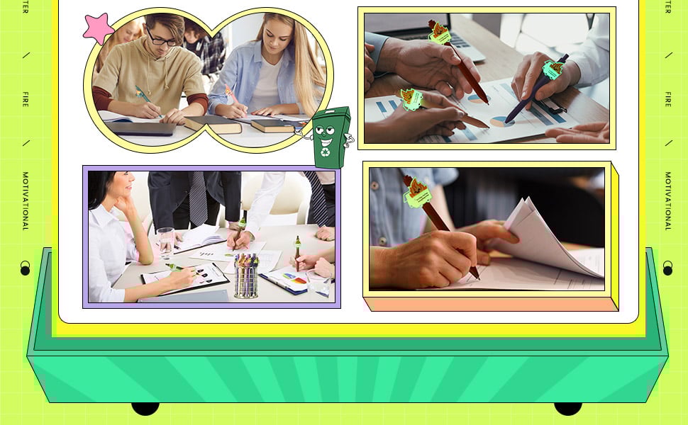 - Enhance Morale with Motivational Messages: each dumpster fire pen is printed with a motivational quote [The strongest steel is forged in the fire of a dumpster], this design suggests that enduring and overcoming chaotic situations can lead to personal growth, likening it to the forging of steel in intense heat, where individuals can become stronger through navigating their own "dumpster fires"; These motivational pens add a positive ambiance in a work scenario