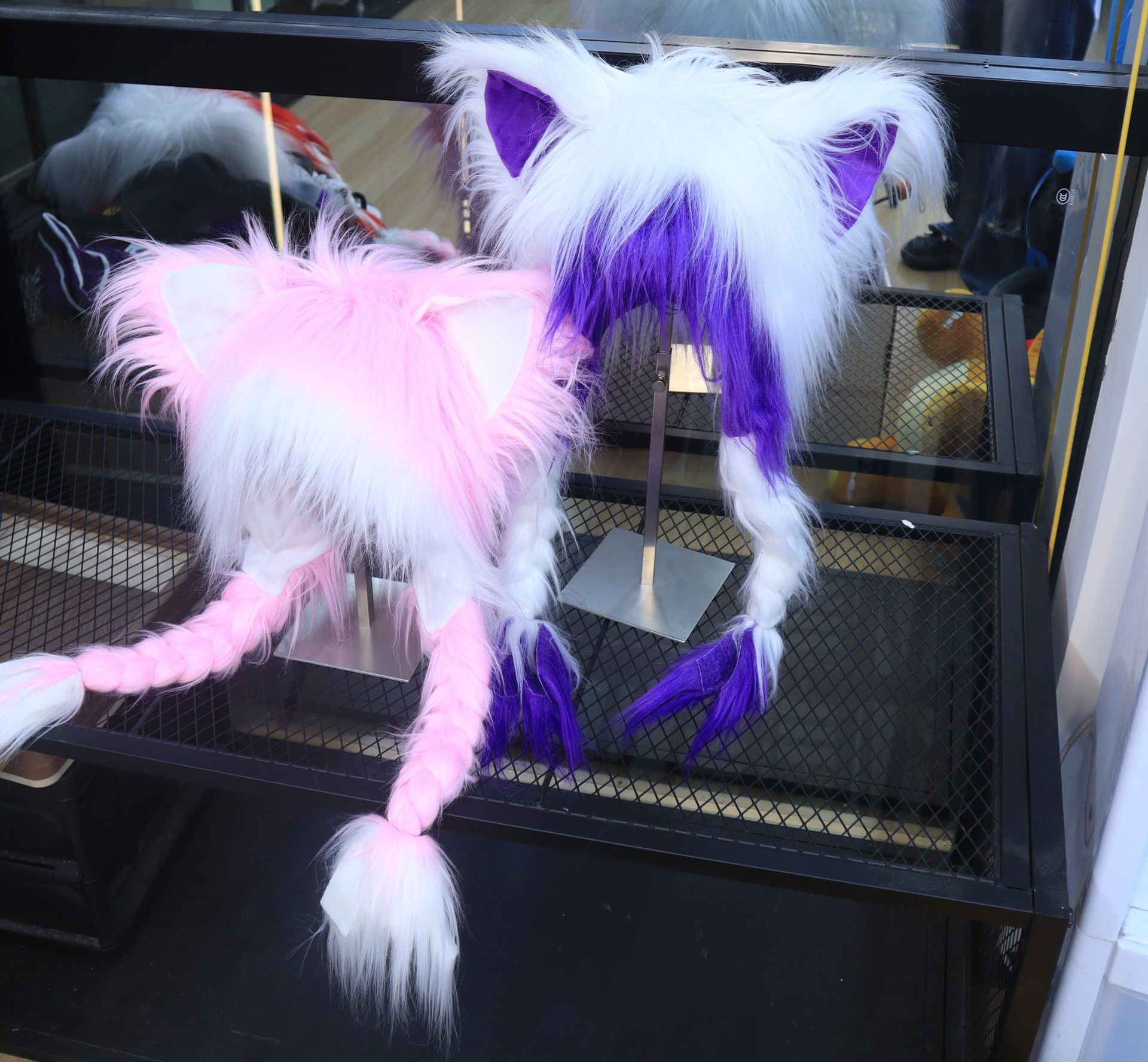 Two long plush braids hang from the headband, also designed in matching two-tone colors. They feel soft against the skin, add playful movement, and offer extra warmth—perfect for cold days or eye-catching cosplay looks.